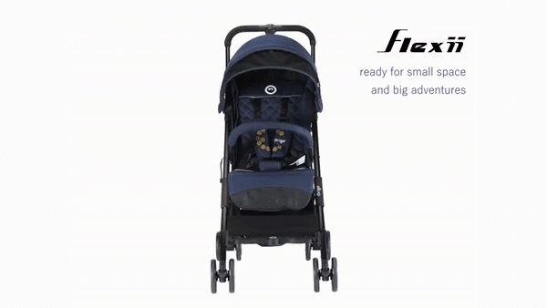 Although FLEXII is ultra-compact when folded, it offers 33cm-width spacious seat after unfolding. Flexii is a ”wow!” stroller thanks to its portable size with ultimate comfort seat
